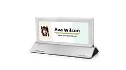 - Электронная именная табличка. Беспроводные и E-ink таблички Vissonic для отображения имени и должности участника на столе переговорной. Управляются централизованно через веб-интерфейс или блок управления.